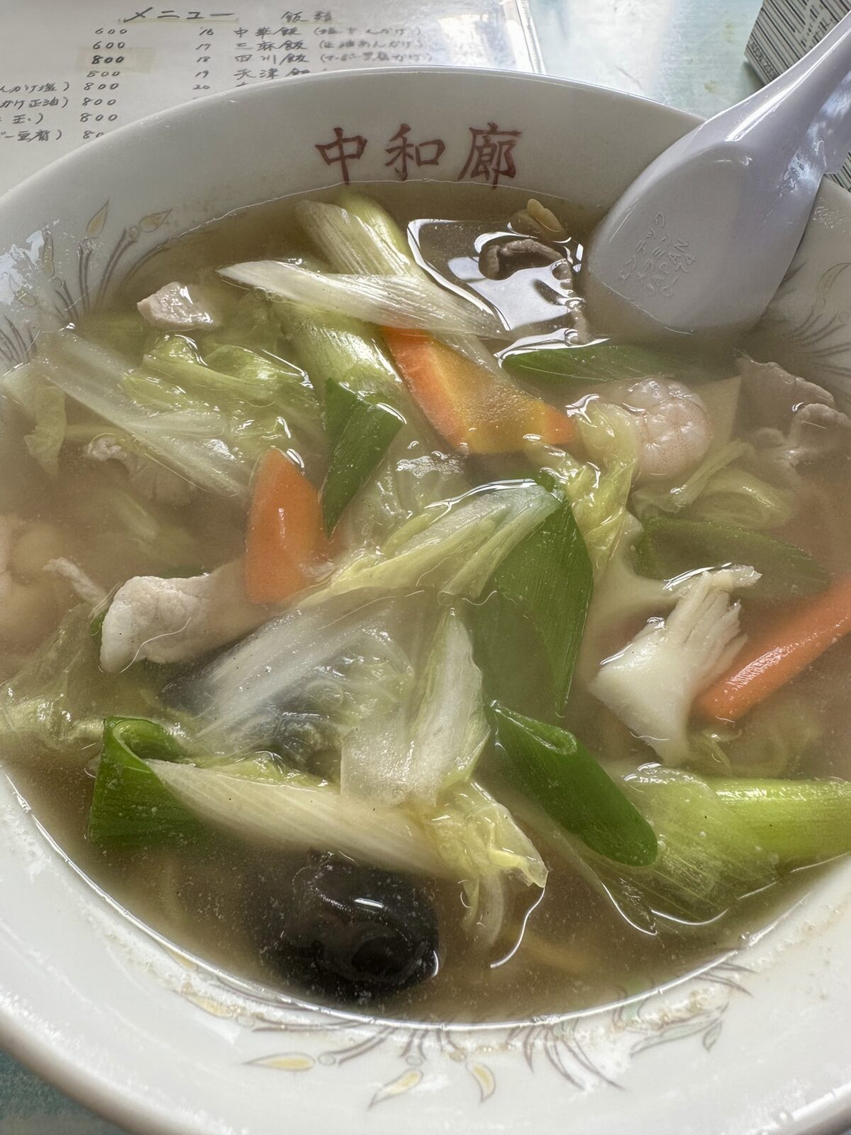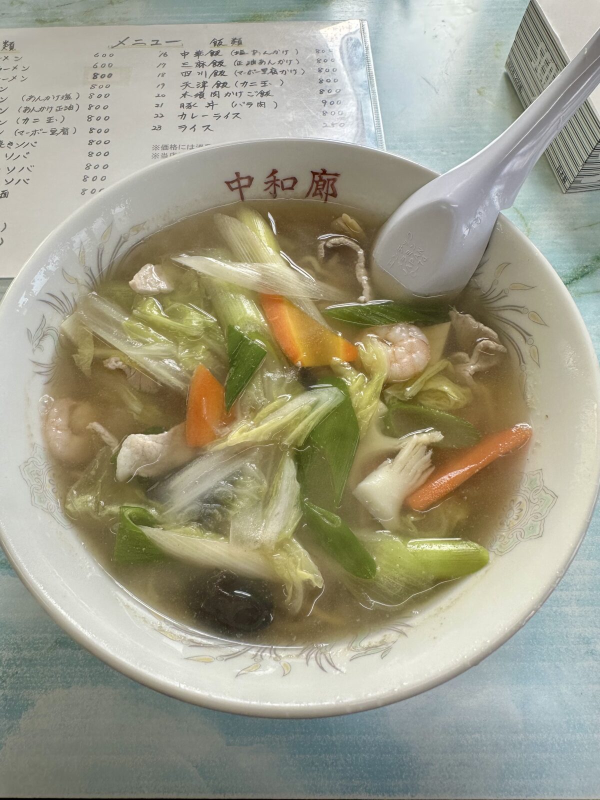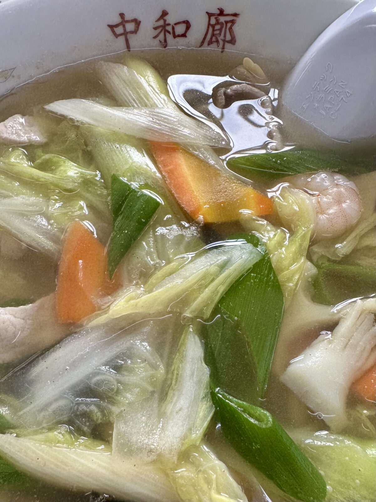 麺と野菜、塩味のスープが全て合わさって美味しい!