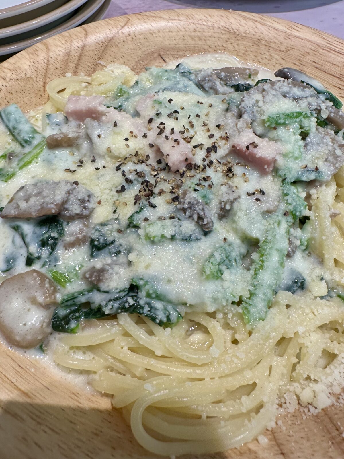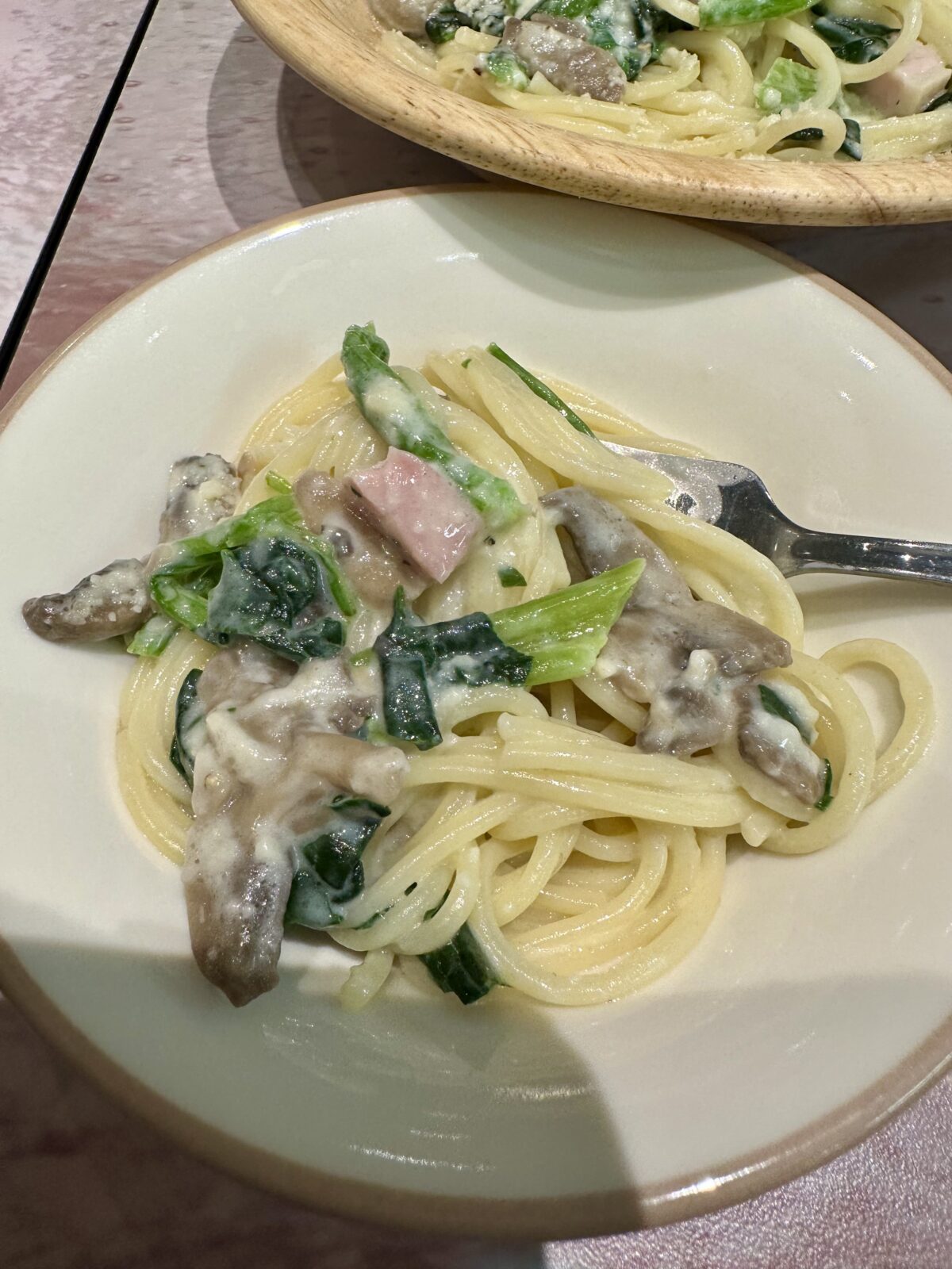 ホワイトソースに3種のきのこが入ったクリームスパゲティ 600円