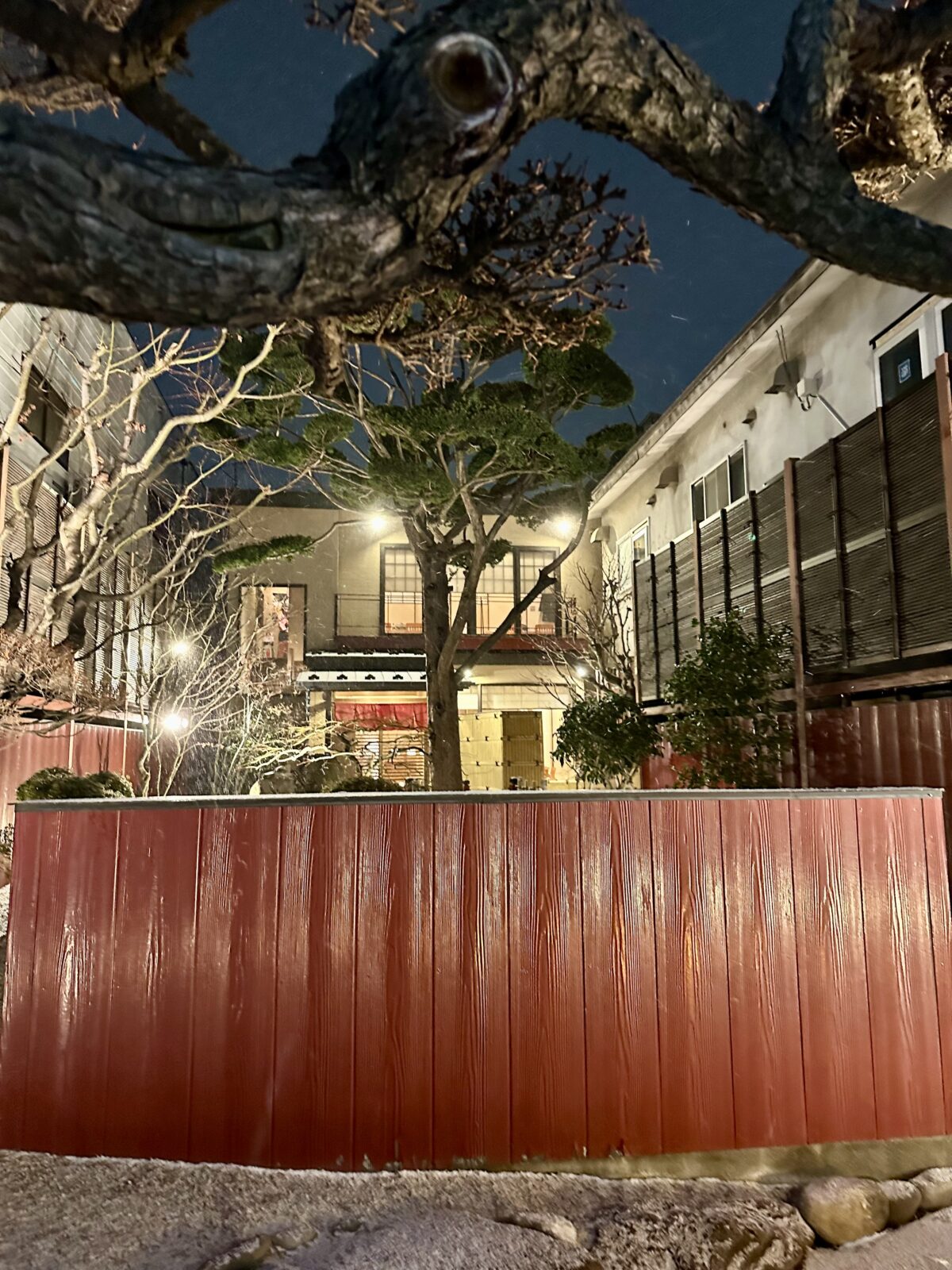 この日はすごい雪の日でしたが、お店の日本庭園が美しく雪化粧していました