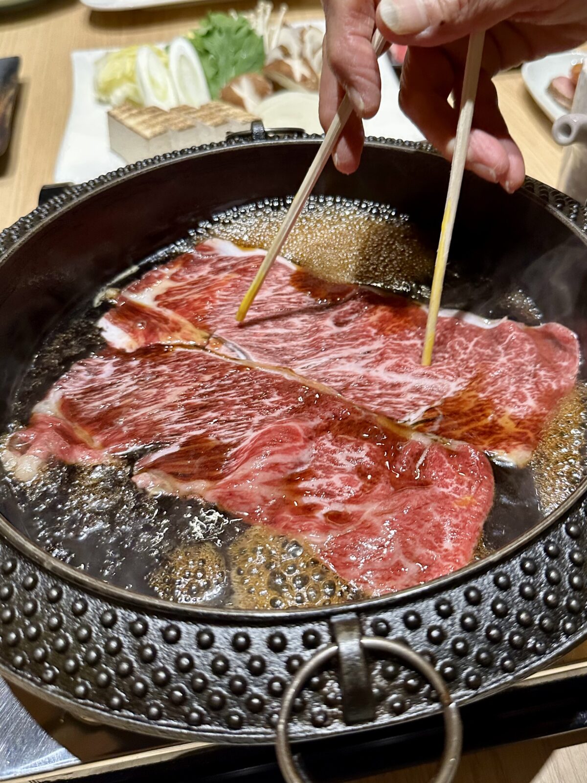 私はお店で本格的なすき焼きを食べるのは初めてなので、心の中で感動していました