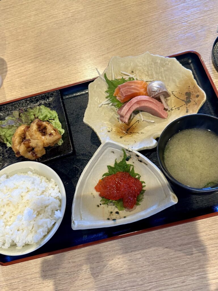 お昼のメニューは海鮮丼の他に定食もあり、壁にもその日のおすすめメニューがあるので要チェックです