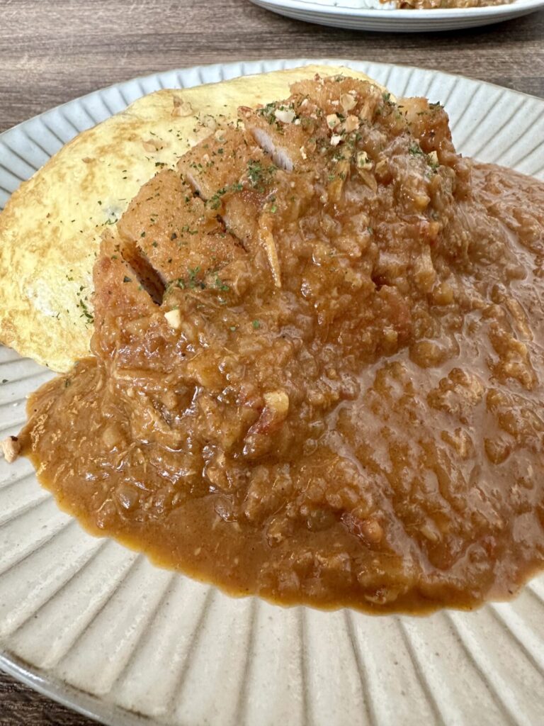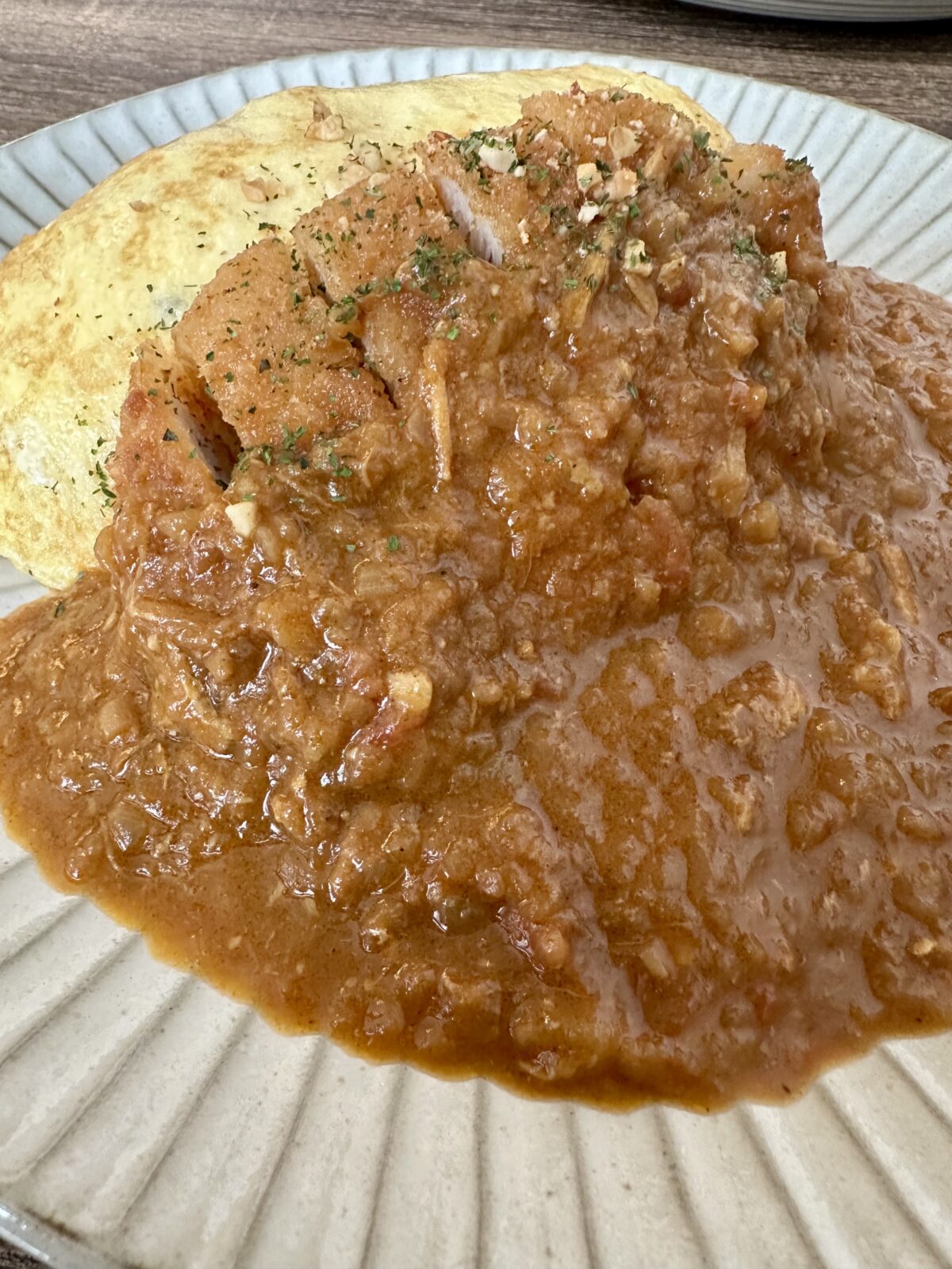 相方様はポークオムカレー1150円 トッピングにポークカツ 400円